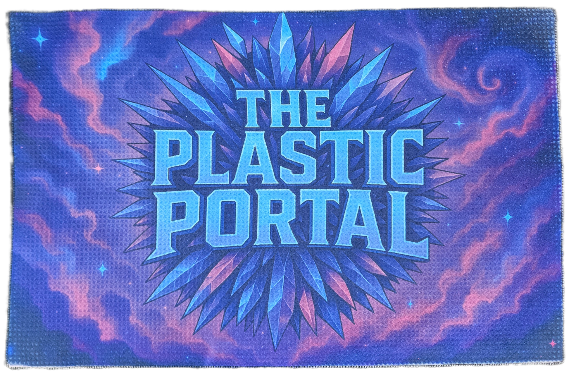 A cosmic burst of crystalline energy—now in misprint form. Crystal Convergence (Misprint) features the same explosive crystal-shard artwork and swirling nebula backdrop, but with minor print imperfections that occurred during production. Colors, alignment, or small visual details may vary, but performance and material quality remain perfect. A great chance to grab a Portal towel at a discounted price.