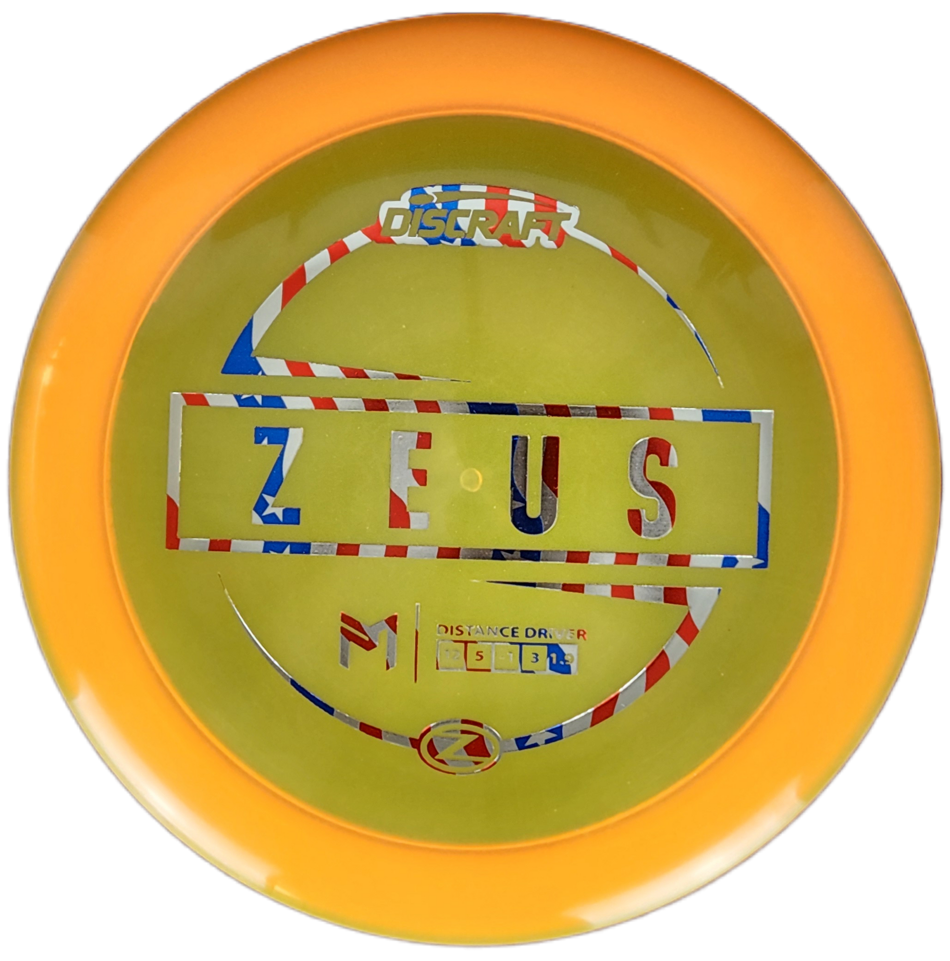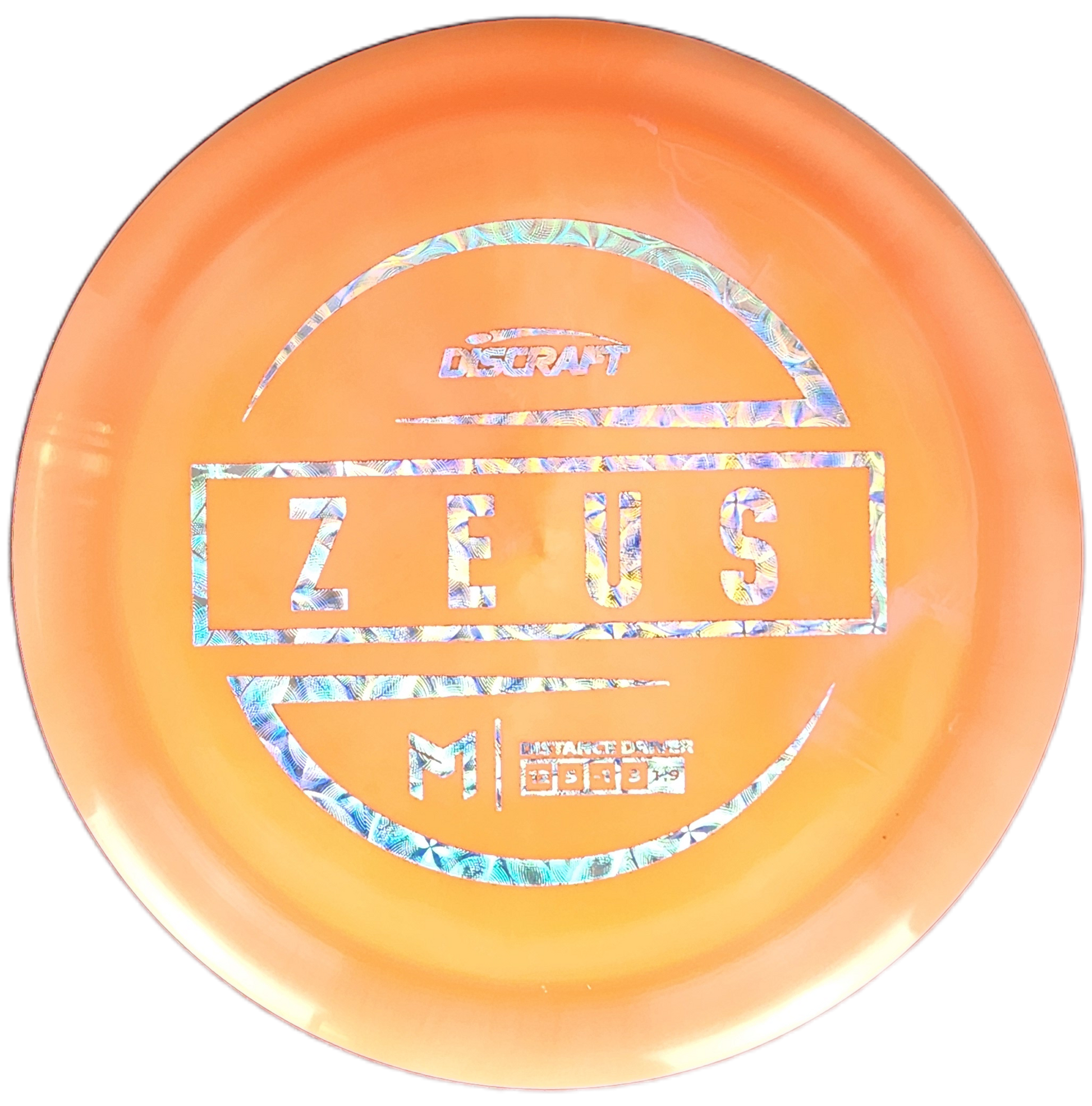 The Discraft Zeus is a high-speed distance driver designed for maximum power and control. With a slight turn and a reliable fade, this disc delivers long, controlled flights, making it a go-to for players seeking both distance and accuracy.