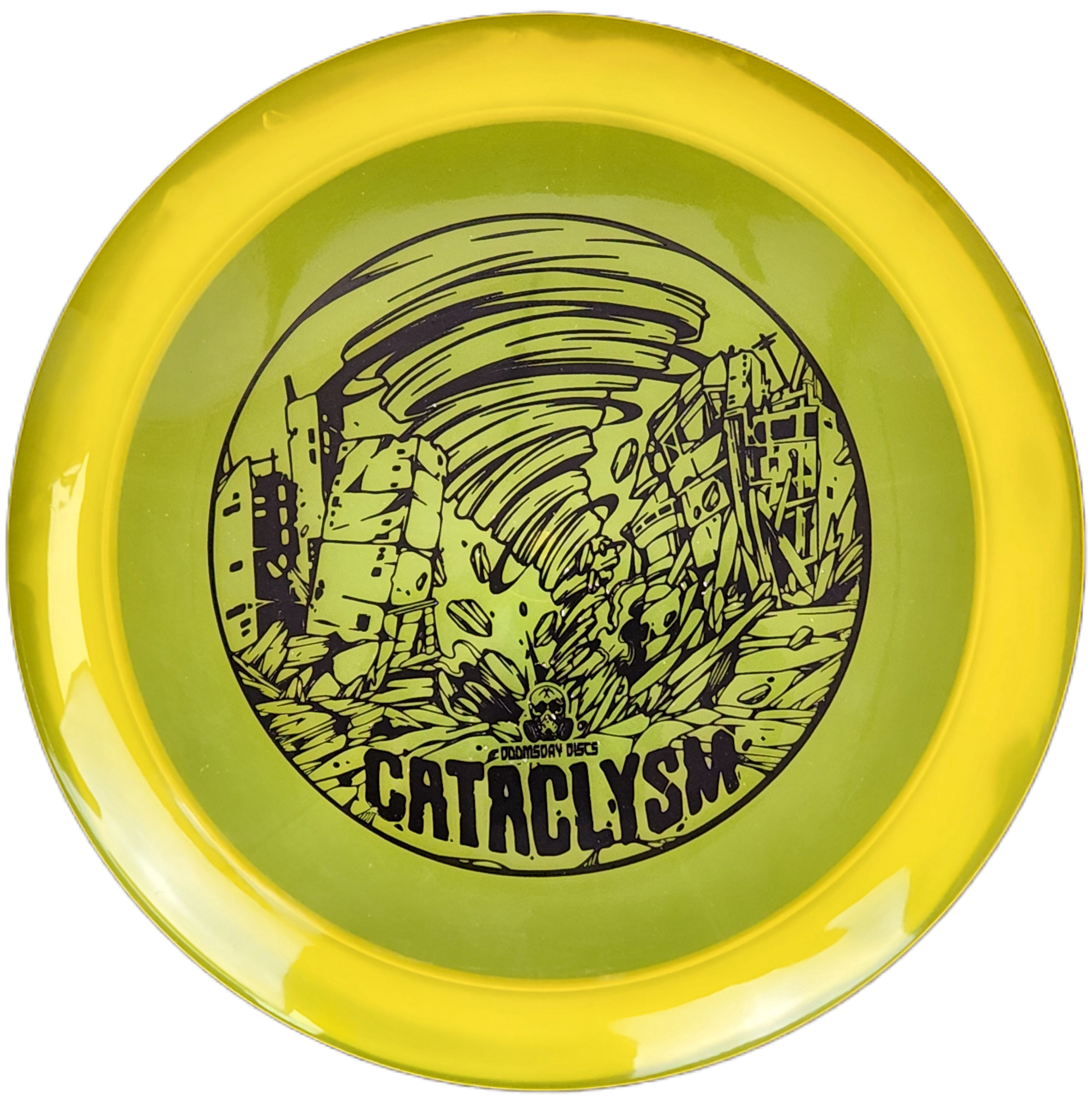 The Cataclysm is one of the most popular distance drivers in the Doomsday lineup. Designed for torque resistance and control, it delivers a powerful S-curve flight — pushing forward on high-speed lines before fading reliably at the end. Its slightly different rim shape from the Dystopia offers variety in feel and shot-shaping, while still staying comfortable in the hand. Whether you’re seeking pure distance or accuracy with a fade you can trust, the Cataclysm is built to perform when the end is near.