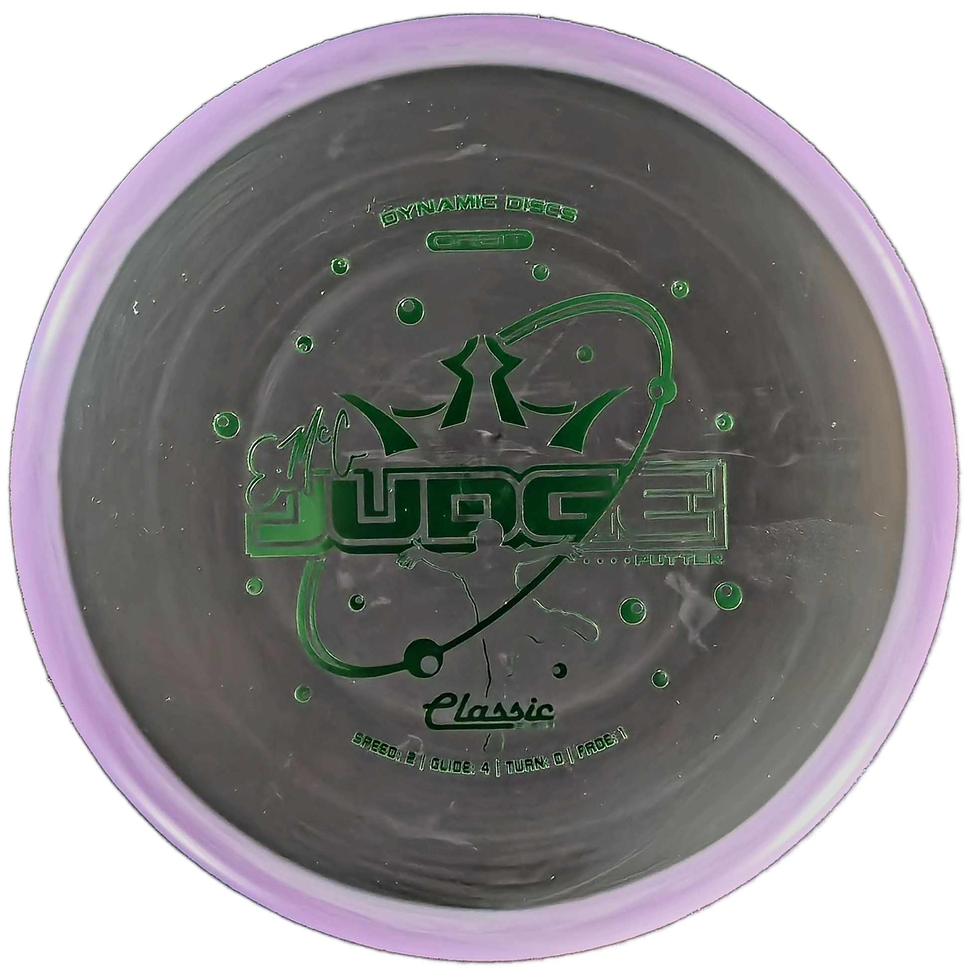 The Dynamic Discs EMAC Judge is a stable putter featuring a microbead for added control and a smooth, consistent release. With a neutral flight and dependable fade, this disc excels at both putting and approach shots.