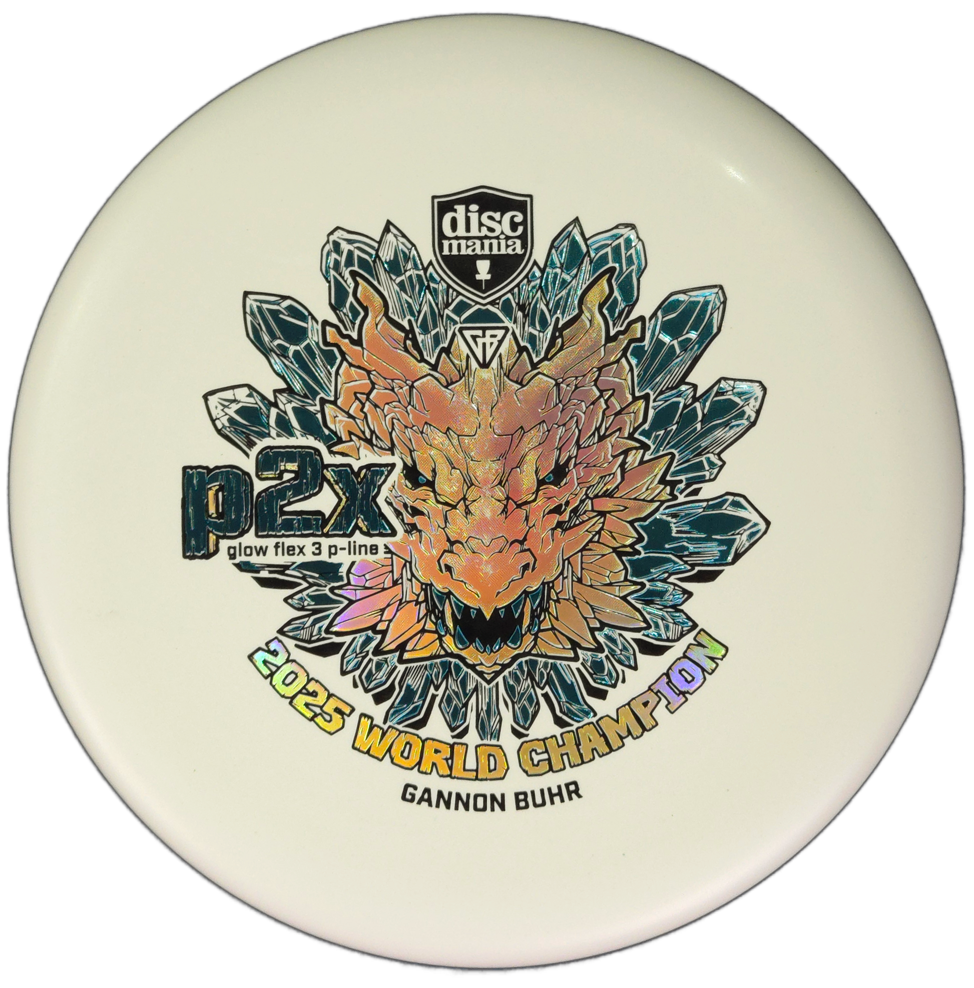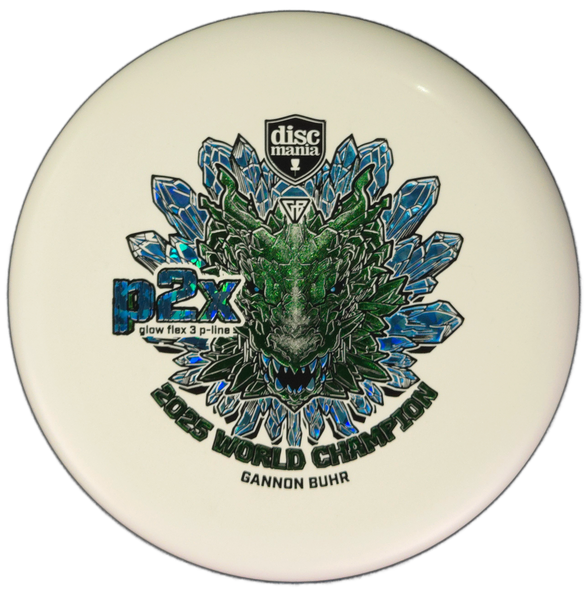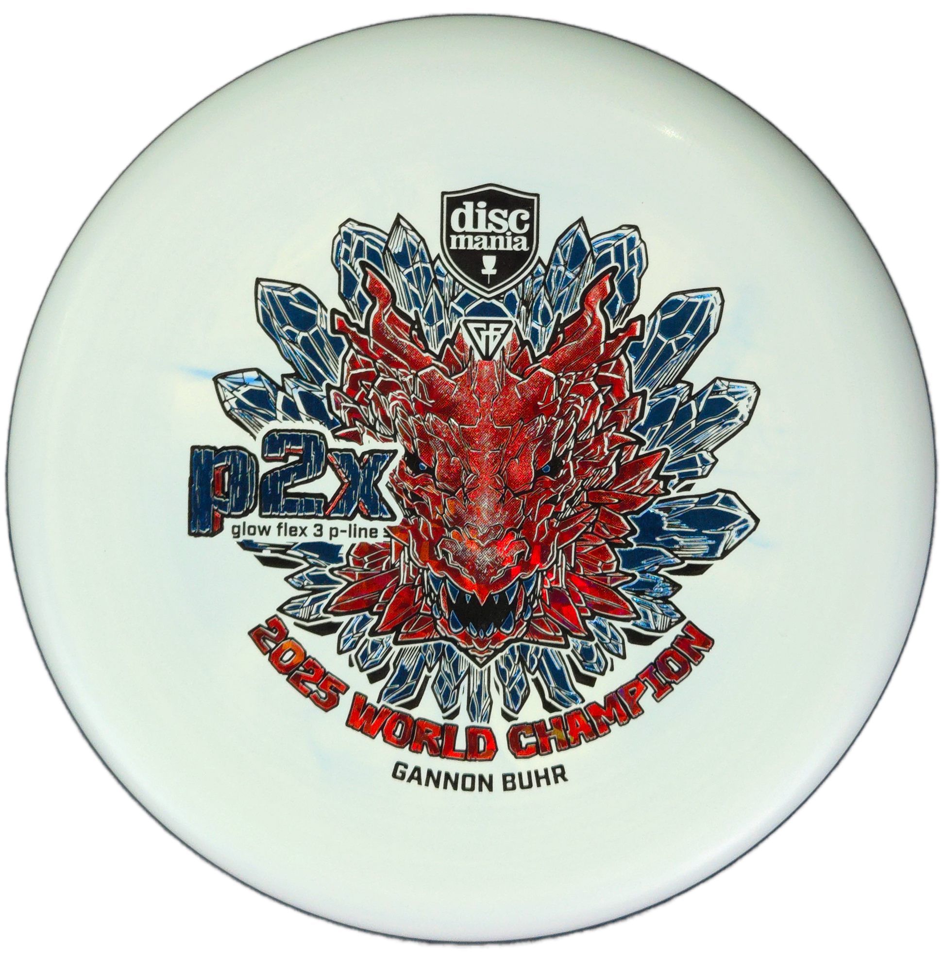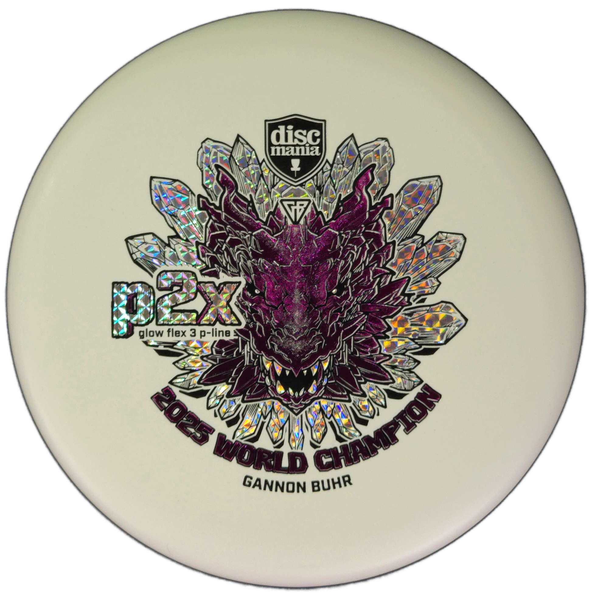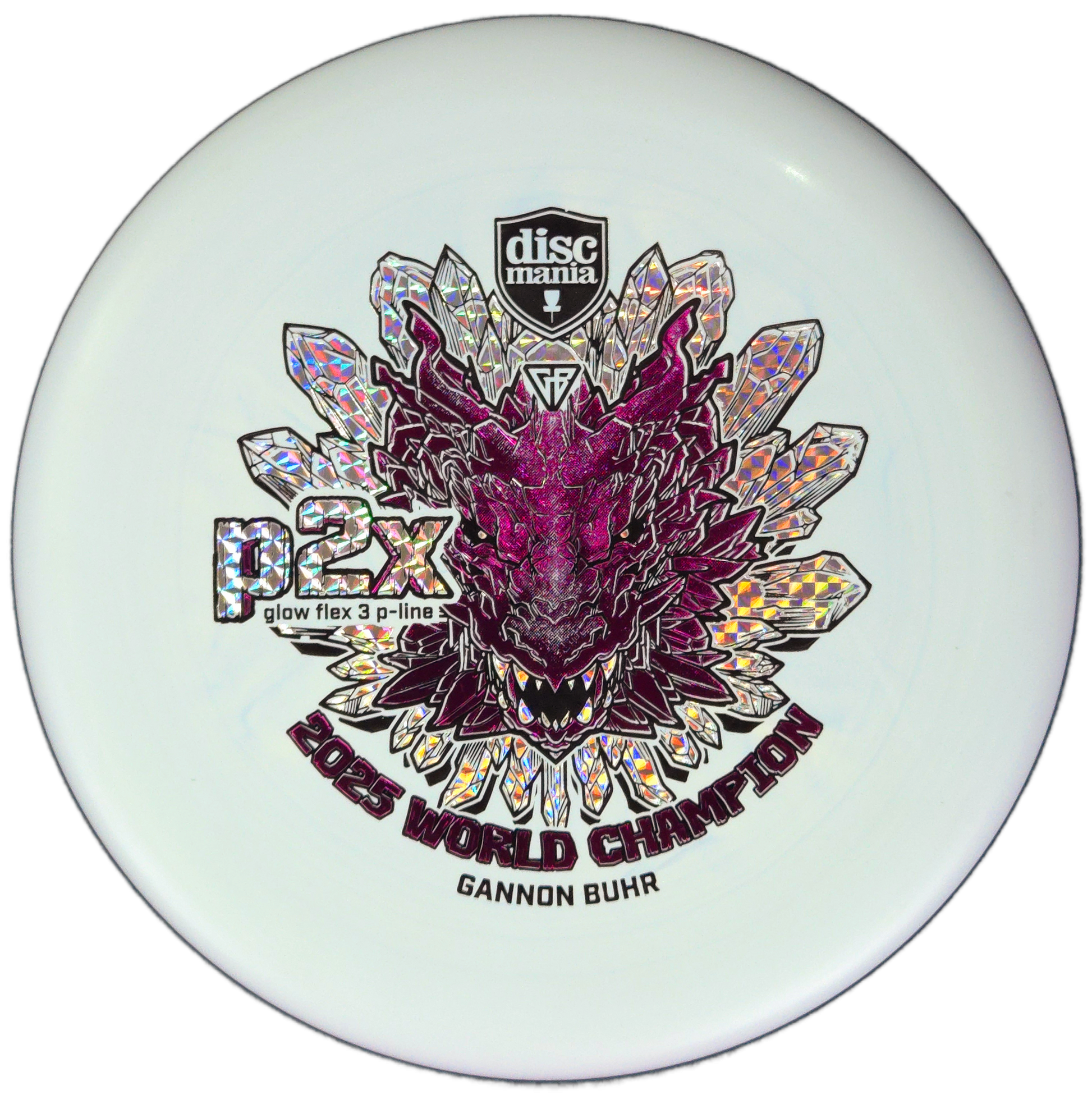 Now available in Glow Flex 3 P-Line plastic — the stiffest and most durable base plastic Discmania has ever made — the Triumph Series P2x combines outstanding grip, durability, and performance with a bold World Champion dragon stamp.