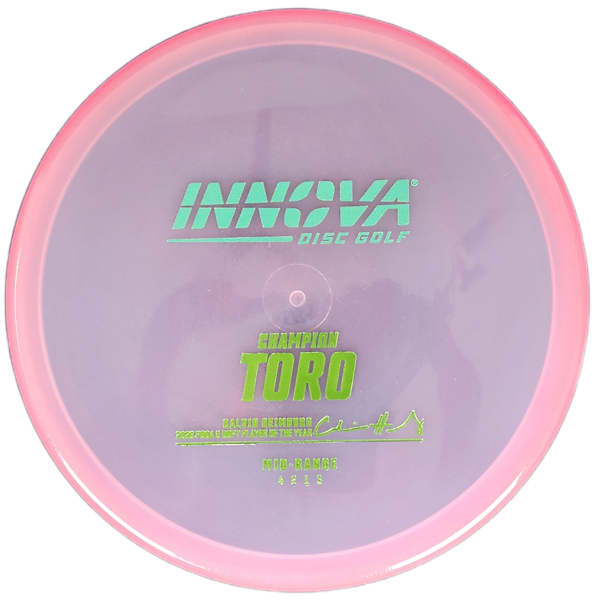 The Innova Toro is an overstable approach disc designed for precision placement and wind resistance. With excellent torque resistance and a predictable fade, this disc is perfect for controlled forehand and backhand upshots.