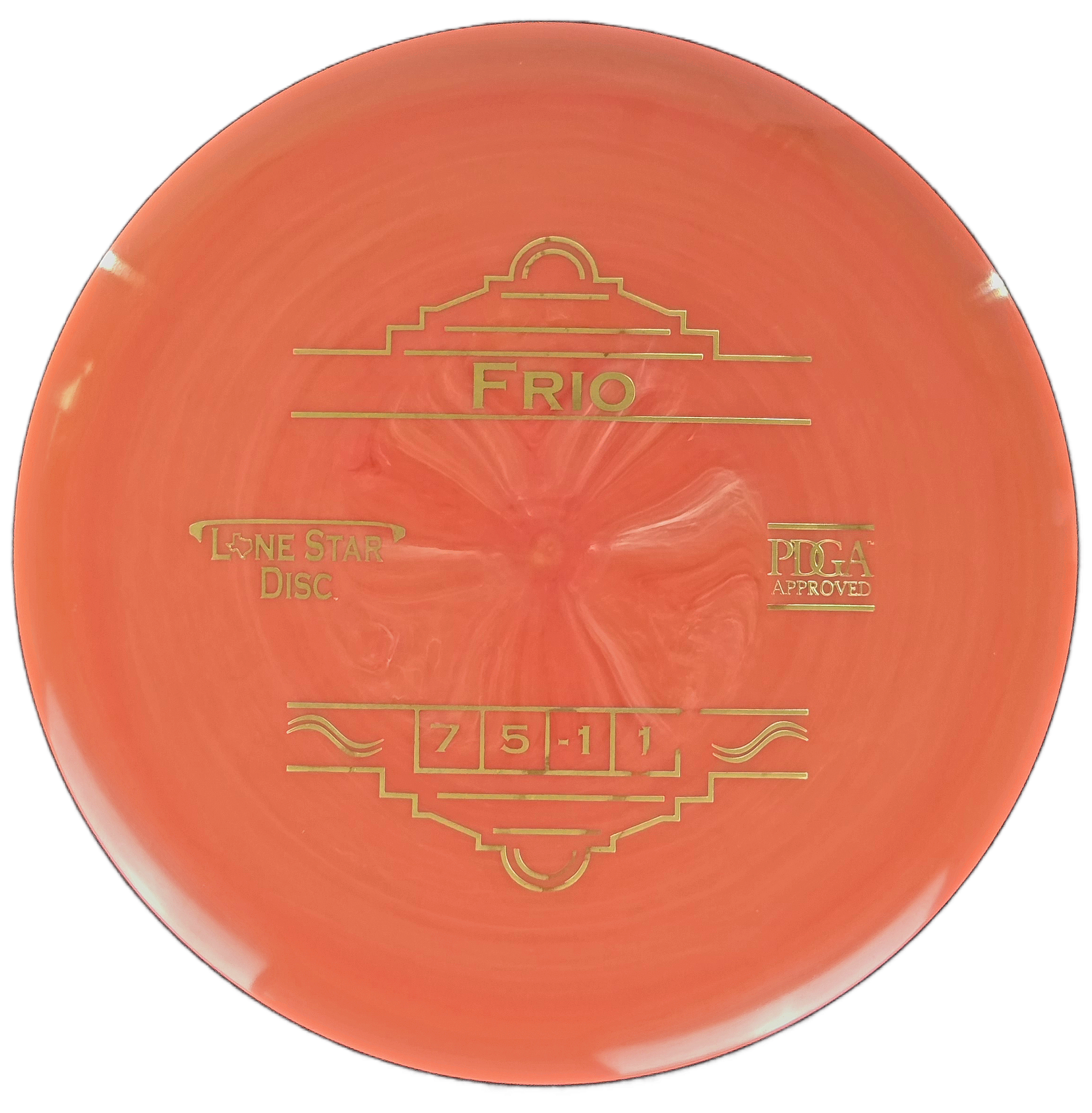 The Lone Star Discs Frio is a smooth-flying, neutral fairway driver designed for effortless control. With a comfortable rim, excellent glide, and a touch of turn, the Frio excels at carving straight shots, gentle turnovers, and long, shapeable fairway lines. It’s one of the most versatile 7-speeds in the Lone Star lineup, offering consistency for experienced players and easy distance for developing arms.