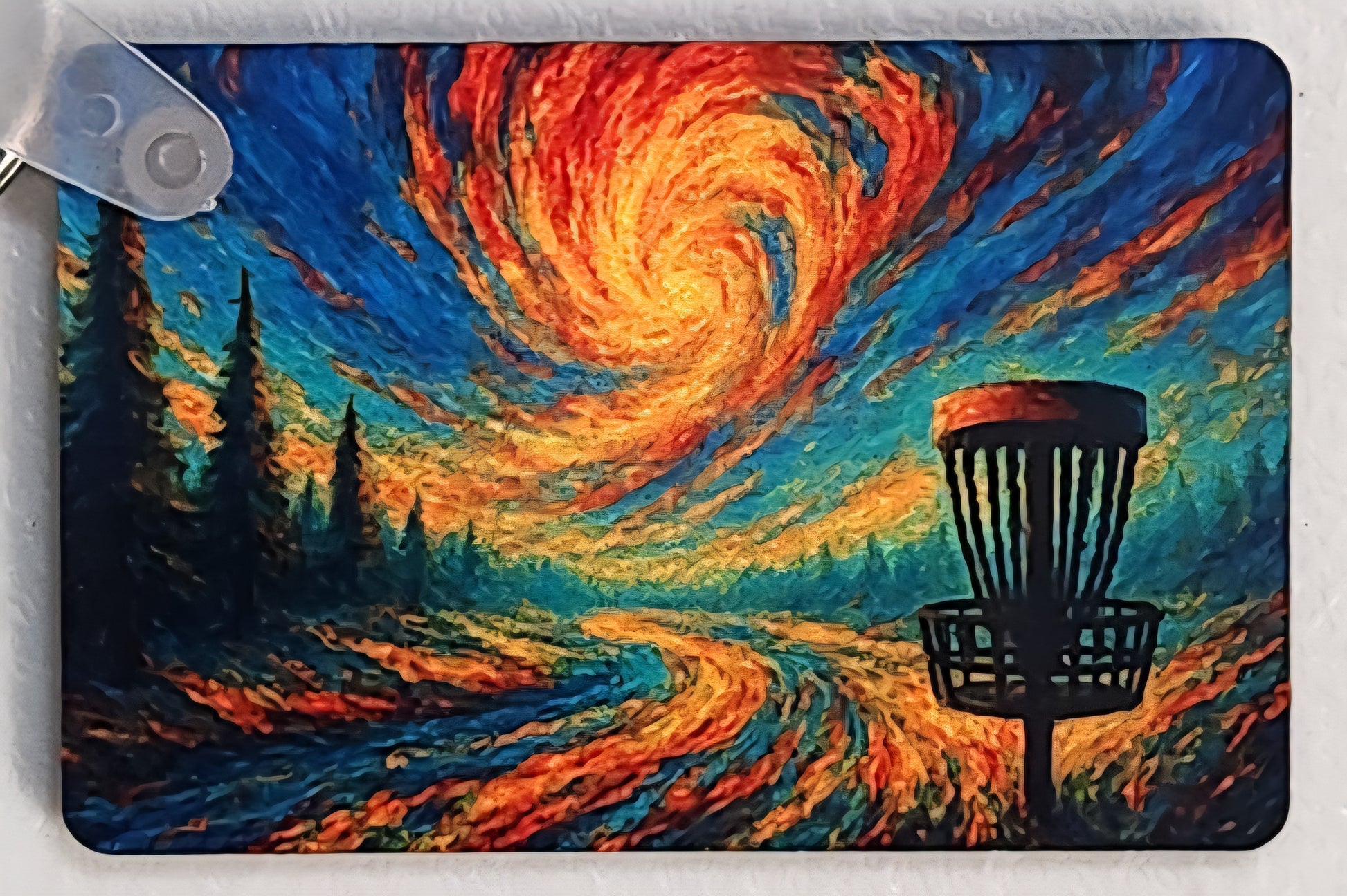 Carry a piece of The Plastic Portal everywhere you go with our Solar Drift keychain. Featuring a flowing, fiery sky and disc golf basket scene on both sides, this fully sublimated keychain blends vivid color with a durable build—perfect for your keys, bag, or as a small collectible.